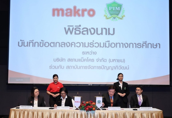 นาง เสาวลักษณ์ ถิฐาพันธ์ ประธานคณะผู้บริหาร กลุ่มธุรกิจค้าส่งแม็คโคร เปิดเผยว่า แม็คโครมุ่งมั่นนโยบาย “สร้างงาน สร้างอาชีพ” วางเป้าหมายสร้างบุคลากรเชิงรุก ให้มีทักษะฝีมือ พร้อมรับการเติบโตของตลาดค้าส่งค้าปลีกที่มีความต้องการทักษะเฉพาะทาง จึงได้ร่วมกับ สถาบันการจัดการปัญญาภิวัฒน์ (PIM) ลงนามบันทึกข้อตกลงโครงการความร่วมมือทางการศึกษา พัฒนาหลักสูตรด้านการจัดการธุรกิจค้าส่งสมัยใหม่ (Modern Wholesale Food Business Management ) ให้ตอบโจทย์ความต้องการที่แท้จริงในสายงานธุรกิจค้าปลีกค้าส่ง โดยใช้ความเชี่ยวชาญของแม็คโคร ผสานกับองค์ความรู้ในด้านวิชาการและหลักสูตรการบริหารจัดการของ PIM เปิดโอกาสให้กับผู้ที่สนใจได้เข้าศึกษาในระดับปริญญาตรี ผ่านเครือข่ายโรงเรียนพันธมิตรกว่า 300 แห่งทั่วประเทศ เป็นทางเลือกเพื่อทำงานในสายอาชีพที่มั่นคง ได้เป็นบุคลากรที่มีเส้นทางการเติบโตในสายอาชีพชัดเจน