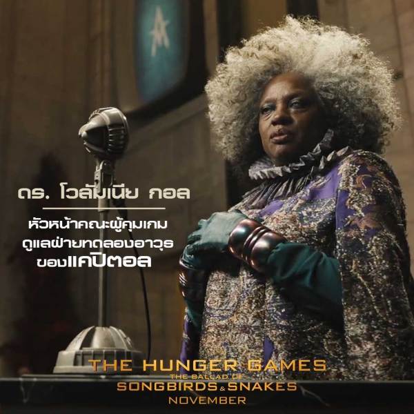 “ดร.โวลัมเนีย กาอูล” หัวหน้าคณะผู้คุมเกม ดูแลฝ่ายทดลองอาวุธของแคปิตอล รับบทโดย “วิโอลา เดวิส” (The Suicide Squad, The Help)