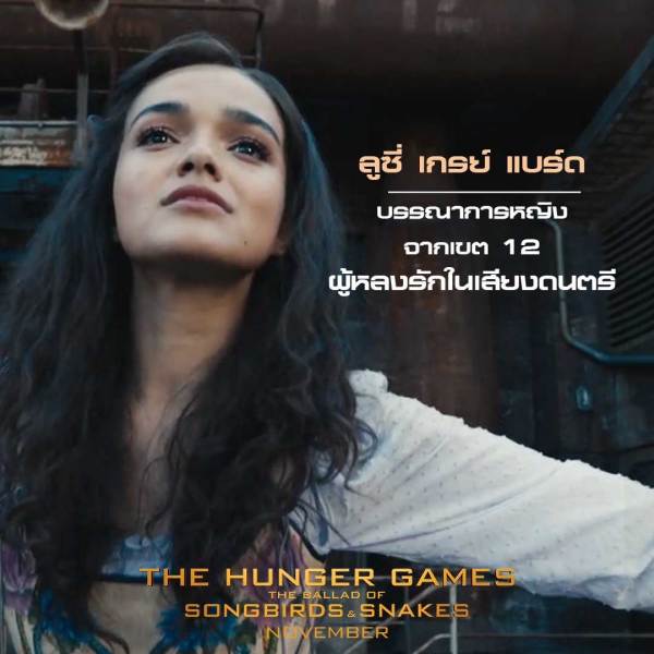 “ลูซี่ เกรย์ แบร์ด” บรรณาธิการหญิงจากเขต 12 ผู้หลงรักในเสียงดนตรี เป็นตัวละครที่มากมิติ มีความอ่อนไหว เต็มไปด้วยบาดแผลในใจแต่มีความจริงใจกว่าเมื่อเทียบกับตัวละครสโนว์ เป็นตัวละครทีมากมิติและมีบุคลิกตรงข้ามกับ แคทนิส เอเวอร์ดีน ทำให้หนังเต็มไปด้วยความสดใหม่ รับบทโดย “เรเชล เซกเลอร์” (Shazam Fury of the Gods) นักแสดงหน้าใหม่ที่น่าจับตามองพร้อมกับมีความสามารถในการร้องเพลงเป็นอย่างมาก