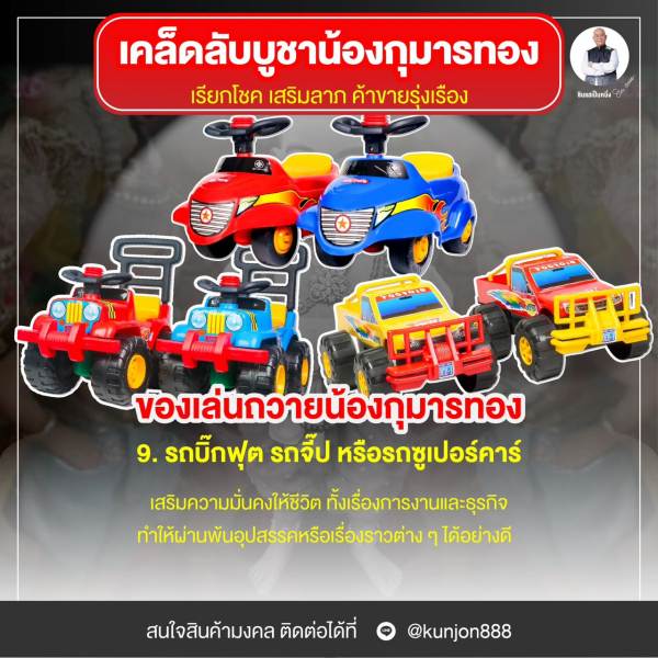 ใครที่ค้าขาย จะทราบดีว่า กุมารทอง เป็นอีกหนึ่งสิ่งศักดิ์สิทธิ์ ที่ต้องมี วันนี้ซินแสเป็นหนึ่ง จะขอแนะทริคบูชาน้องกุมาร ที่จะเสริมทรัพย์ เสริมลาภ ให้การค้าร่ำรวย โดยเฉพาะของเล่นที่ควรมี ห้ามพลาด