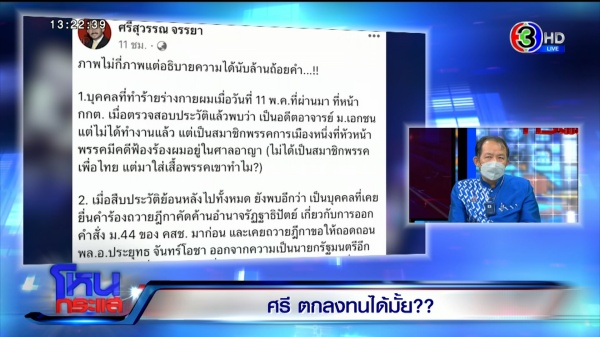 ศรีสุวรรณ : รายการคุณไม่ใช่อนุญาโตตุลาการที่จะตัดสินหรือทำให้คู่กรณีเขาหายความขัดแย้งกัน มันไม่เกิดประโยชน์นะครับ