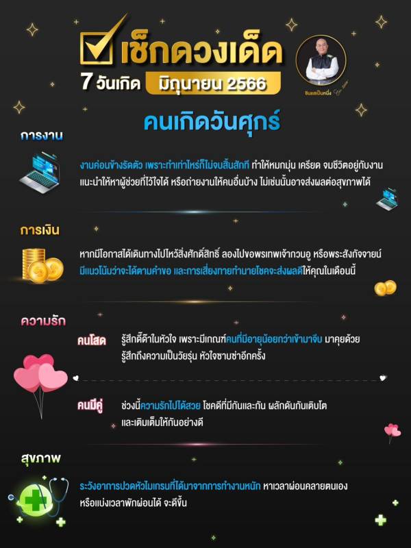 เช็กดวงเด็ด 7 วันเกิด เดือนมิถุนายน 2566