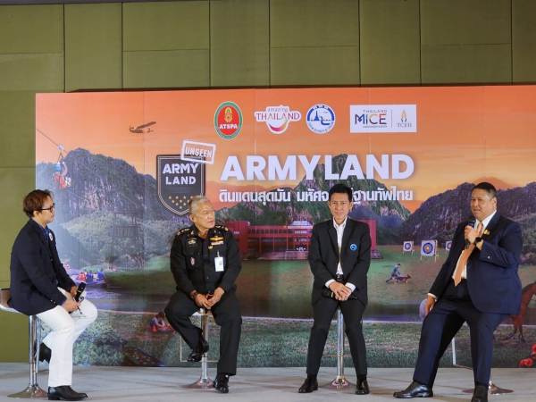 พล.ท. พิชญ์ โชติสุต ผู้อำนวยการ สำนักงานส่งเสริมการท่องเที่ยวและกีฬากองทัพบก เปิดเผยว่า สำนักงานส่งเสริมการท่องเที่ยวและกีฬากองทัพบก (ทบ.)ร่วมกับ การท่องเที่ยวแห่งประเทศไทย (ททท.) และสำนักงานส่งเสริมการจัดประชุมและนิทรรศการ องค์การมหาชน หรือ ทีเส็บ จัดโครงการ Unseen ArmyLand : ดินแดนสุดมันมหัศจรรย์ฐานทัพไทย โดยมีวัตถุประสงค์เพื่อประชาสัมพันธ์กิจกรรมการท่องเที่ยวในเขตทหารที่หลากหลาย นำเสนอภายใต้แนวคิด “สนุกสนาน ท้าทาย คุ้มค่า และ ปลอดภัย” ที่ทาง กองทัพบก (ทบ.) ได้พัฒนาและคัดสรรแหล่งท่องเที่ยวในเขตทหารที่มีอยู่ทั่วประเทศ ครอบคลุมกิจกรรมท่องเที่ยวที่หลากหลายสไตล์ อาทิ การท่องเที่ยวเพื่อการนันทนาการและผจญภัย การท่องเที่ยวเพื่อการเรียนรู้ การท่องเที่ยวเพื่อฝึกอบรม การท่องเที่ยวเพื่อสุขภาพและการกีฬา การท่องเที่ยวเพื่อการประชุมและนิทรรศการ เป็นต้น ครอบคลุมกลุ่มเป้าหมาย ทุกเพศ ทุกวัย รวมถึงกลุ่มบริษัท หน่วยงาน องค์กร