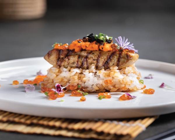 ต่อด้วยเมนูข้าวด้งฟัวกราส์ ย่างสุขกำลังดีกรอบนอกนุ่มใน อร่อยแบบละลาย ชุ่มฉ่ำด้วยซอสเทอริยากิ พร้อมเพิ่มความพิเศษด้วยอูนิพรีเมียมนำเข้าจากญี่ปุ่น, ก่อนปิดท้ายความลักซูวรี่ดินแดนปลาดิบด้วย ซูชิปลาอนาโกะ ปลาไหลทะเลญี่ปุ่นทั้งตัว ราดด้วยซอสอานาโงะสูตรพิเศษจากเซฟประจำร้าน