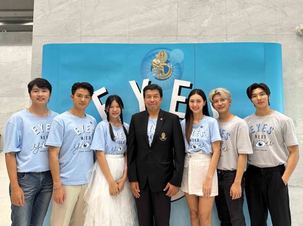รศ.นพ.ฉันชาย สิทธิพันธุ์ คณบดี คณะแพทยศาสตร์ จุฬาลงกรณ์มหาวิทยาลัย เป็นประธานงานแถลงข่าวเปิดตัวเข็มวันอานันทมหิดล ประจำปี พ.ศ. 2566 “น้ำใจ…สร้างกุศล” EYES NEED YOU ต่อสายตา ด้วยสายใจ โดยมี “มาริโอ้