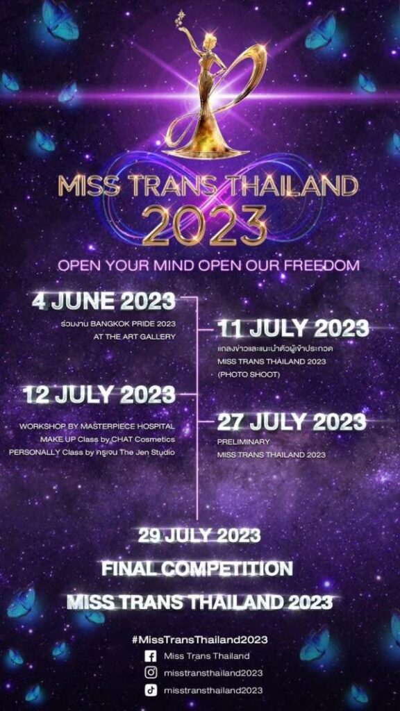 เรียกได้ว่าเล็ก ๆ ไม่ใหญ่ทำจริง ๆ สำหรับเวที miss thans Thailand 2023 ที่นำโดยประธานผู้จัดการประกวด และเจ้าของลิขสิทธิ์ Miss Trans Thailand “พญ.อัญชลี ชีวาจร” หรือ “หมอนก อโศก” CEO Century Clinic , Century Plus clinic , Ruby Rose clinic ผนึกกำลังครั้งยิ่งใหญ่กับ “คุณวันชัย เต็มธนทรัพย์” CEO 1shine Bangkok นั่งแท่นผู้อำนวยการกองประกวด และคุณพีรวัฒน์ เวชประสิทธิ์ MANAGING DIRECTOR 1shine Bangkok รับหน้าที่รองผู้อำนวยการกองประกวด ในปีนี้ ภายใต้คอนเซ็ปต์ Diversity และมีสโลแกน Open your mind Open our freedom และเซอร์ไพรส์สุดๆกับมงกุฎจาก God Diamond ในคอนเซ็บ “The infinite of your mind”