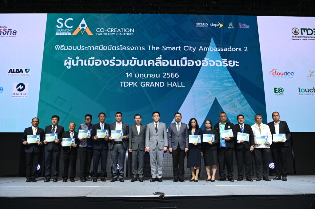 เมืองอัจฉริยะ ผลสำเร็จจาก “โครงการนักดิจิทัลพัฒนาเมืองรุ่นใหม่ รุ่นที่ 2” (The Smart City Ambassadors 2 (SCA#2)) โดยมี ผศ.ดร.ณัฐพล นิมมานพัชรินทร์ผู้อำนวยการใหญ่สำนักงานส่งเสริมเศรษฐกิจดิจิทัล หรือ ดีป้าคณะผู้บริหาร ผู้นำเมือง และหน่วยงานพันธมิตรร่วมพิธีโดยพร้อมเพรียง