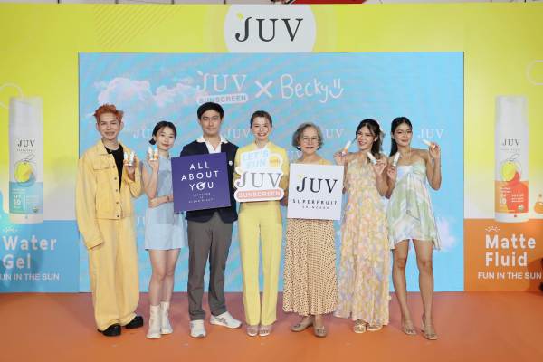 สำหรับบรรยากาศภายในงาน “Let’s fun with JUV Sunscreen สนุกทุกแสงกับ JUV กันแดดออร์แกนิค” เต็มไปด้วยความสนุกสนาน และความสดใส พร้อมรับมือกับทุกกิจกรรม ไม่ว่าจะหน้าร้อน หน้าฝน หรือ หน้าไหน ๆ ด้วยผลิตภัณฑ์ปกป้องแสงแดดสำหรับผิวหน้า เสริมคุณสมบัติในการบำรุงด้วย Superfruit ที่อุดมไปด้วยสาร Anti-oxidant ช่วยบำรุงอีกขั้น กับผลิตภัณฑ์ JUV Water Gel UV PROTECTION ครีมเนื้อเจล บางเบา สบายผิว ไม่ก่อให้เกิดการอุดตันรูขุมขน และ JUV Matte Fluid Sunscreen ผลิตภัณฑ์ปกป้องแสงแดดสำหรับผิวหน้า เนื้อสัมผัสกำมะหยี่ มีส่วนผสมของรองพื้น ช่วยปกปิดผิวเรียบเนียนสม่ำเสมอ ดูเป็นธรรมชาติ ปกปิดและป้องกันแสงยูวี และแสงแดดไปพร้อม ๆกัน