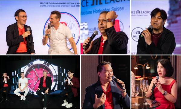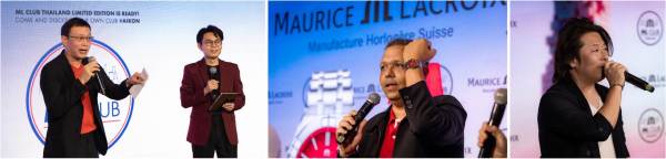 ภายในงานได้รับเกียรติจาก ดร. ปราโมทย์ เหรียญเจริญสุข ในฐานะสมาชิก ML Club Founder และคุณปอนด์ รีวิว มาร่วมพูดคุยพร้อมกับเหล่า ML Club Founders และสมาชิก ML Club Thailand ท่านอื่นๆ รวมถึงยังได้รับเกียรติจากคุณโคจิ นาคาซาว่า ML Club Japan Founder ที่บินจากประเทศญี่ปุ่นเพื่อมาร่วมแชร์ประสบการณ์และพูดคุยอย่างเป็นกันเอง โดยคุณอรุณ ซุกลา อีกหนึ่งตัวแทนของ ML Club Founder ได้พูดถึง ML Club Thailand ว่า “วัตถุประสงค์ของคลับนี้ แน่นอนว่าเป็นการรวมตัวของเหล่าคนรักนาฬิกา Maurice Lacroix และเปิดโอกาสให้พวกเราได้มาพบกันและแลกเปลี่ยนความประทับใจ รวมถึงความชื่นชอบที่มีต่อแบรนด์ด้วยกัน ทว่า มากไปกว่านั้นแล้วคือการได้มาทำกิจกรรมและสร้างสรรค์ประโยชน์ร่วมกันเพื่อคืนสู่สังคม เช่น การได้มีส่วนร่วมในการบริจาคสมทบทุนมอบให้แก่องค์กรต่างๆ เพื่อการกุศล ผมมองว่า ML Club Thailand เป็นเหมือนเซอร์ไพรส์สำหรับแบรนด์ และเป็นคลับแรกในโลกที่เกิดขึ้นในเมืองไทยที่แสดงออกถึงความหลงใหลในนาฬิกาอย่างแท้จริงของชาวไทย ทั้งยังตอกย้ำถึงความสำเร็จในรูปแบบของคลับที่พิสูจน์ได้จากการเปิดตัวนาฬิการุ่นพิเศษของ ML Club Thailand Limited Edition โดยมีทั้งงานดีไซน์และแนวคิดสร้างสรรค์ที่ได้มาจากการโหวตและการแสดงความคิดเห็นของคลับแห่งนี้ ทั้งการเปิดตัวหน้าปัดสีแดงเป็นครั้งแรกของแบรนด์ และยังเป็นการใช้เทคนิคแบบไล่เฉดสีบนหน้าปัดหรือ gradient dial ที่แบรนด์เองก็ยังไม่เคยทำมาก่อน รวมถึงฝาหลังซึ่งออกแบบมาเพื่อให้รู้ได้ทันทีว่านาฬิการุ่นนี้คือผลงานของ ML Club Thailand Limited Edition โดยลงตัวเข้ากับสายยางสีแดงที่จับคู่รับกับสีหน้าปัด และส่งมอบมากับเซ็ตพิเศษเฉพาะของนาฬิการุ่นนี้ สิ่งหนึ่งที่มีส่วนผลักดันให้ความสำเร็จเหล่านี้เกิดขึ้นได้นั้น ต้องขอขอบคุณแบรนด์ Maurice Lacroix ที่พร้อมรับฟังและกล้าที่จะตัดสินใจพัฒนานาฬิการุ่นพิเศษนี้ขึ้นจากความต้องการอย่างแท้จริงของกลุ่มสมาชิก ML Club Thailand ที่ทุกคนมีโอกาสได้ร่วมโหวตและแสดงความคิดเห็น จนนำไปสู่กระบวนการออกแบบและดีไซน์ให้นาฬิการุ่นนี้เป็นไปตามความปรารถนาของคลับอย่างแท้จริง”