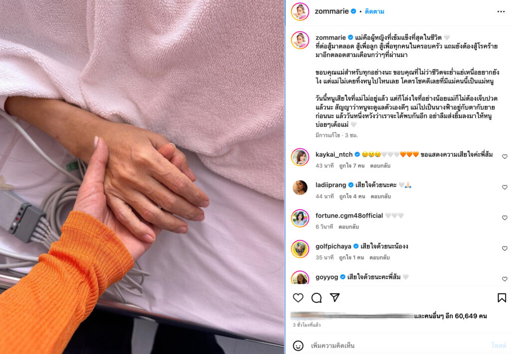 ส่งกำลังใจให้ “ส้ม มารี” สูญเสียคุณแม่อันเป็นที่รักจากไปอย่างสงบ