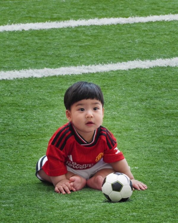 น่ารักจ้ำม่ำมาก! “น้องพีร์เจ” มาในชุดนักฟุตบอลทีมแมนยูฯ