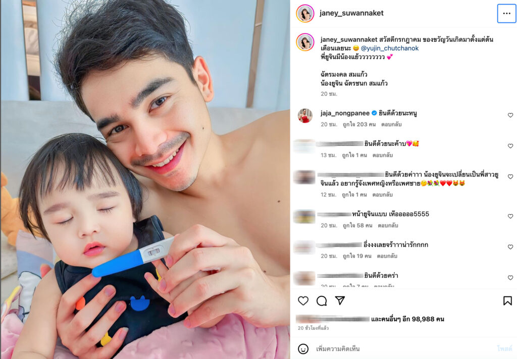 สำหรับนักร้องเสียงดี ที่ทั้งสวยและขยันสุด ๆ อย่าง “เจนนี่ รัชนก สุวรรณเกตุ” ที่ล่าสุดออกมาประกาศข่าวดี โดยโพสต์ผลตรวจครรภ์ที่ขึ้น2 พร้อมแคปชั่นไว้ว่า “สวัสดีกรกฎาคม ของขวัญวันเกิดมาตั้งแต่ต้นเดือนเลยนะ @yujin_chutchanok พี่ยูจินมีน้องแย้วววววววว ฉัตรมงคล สมแก้ว น้องยูจิน ฉัตรชนก สมแก้ว” เย้ ๆ “น้องยูจิน” มีน้องแล้วค่า💓