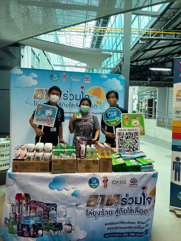 เมื่อวันที่ 15 มิถุนายน 2566 ที่ผ่านมา เป็นวันไข้เลือดออกอาเซียน (ASEAN DENGUE DAY) บริษัทเอิร์ธ (ประเทศไทย) จำกัด ได้จัดทำกิจกรรมรณรงค์ป้องกันไข้เลือดออกพร้อมกันทั่วประเทศกับ 4 ภาค 4 จังหวัด ในโครงการ “อาทร่วมใจ ไล่ยุงร้าย สู้ภัยไข้เลือดออก” โดยนำผลิตภัณฑ์ที่มีคุณภาพผ่านการรับรองว่ามีความปลอดภัยที่ช่วยในการป้องกันยุงและแมลง ได้แก่ อาทพลัส ยาจุดกันยุง และโอเอซิส โลชั่นทากันยุง รวม 21,050 ชิ้น แจกจ่ายให้กับประชาชน พร้อมมอบให้กับโรงพยาบาลในพื้นที่ เพื่อเป็นการสร้างความตระหนักรู้และการป้องกันตัวเองหรือป้องกันชุมชนให้ห่างไกลจากโรคไข้เลือดออก ซึ่งเรายังคงสานต่อกิจกรรมอย่างต่อเนื่อง เพื่อให้คนไทยเห็นความสำคัญในการรู้จักวิธีป้องกันตัวเอง ตามเป้าหมายที่ตั้งไว้ว่าจะใช้เวลา 5 ปี ในการทำภารกิจนี้ให้สำเร็จโดยให้“ไข้เลือดออกเป็นศูนย์ Zero Dengue Fever”