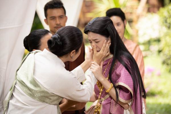 โดยฉากเบื้องหลังที่นำมาให้ชมกันนี้ เป็นฉากที่ลำจวน(เฌอปรางBNK48) กระโดดน้ำหนีจากเรือพิธีส่งตัวงานแต่งงานระหว่างเธอกับท่านเจ้าคุณอินทรา( ณัฏฐ์ เทพหัสดิน) ฉากนี้จะหวาดเสียวขนาดไหนไปชมกัน