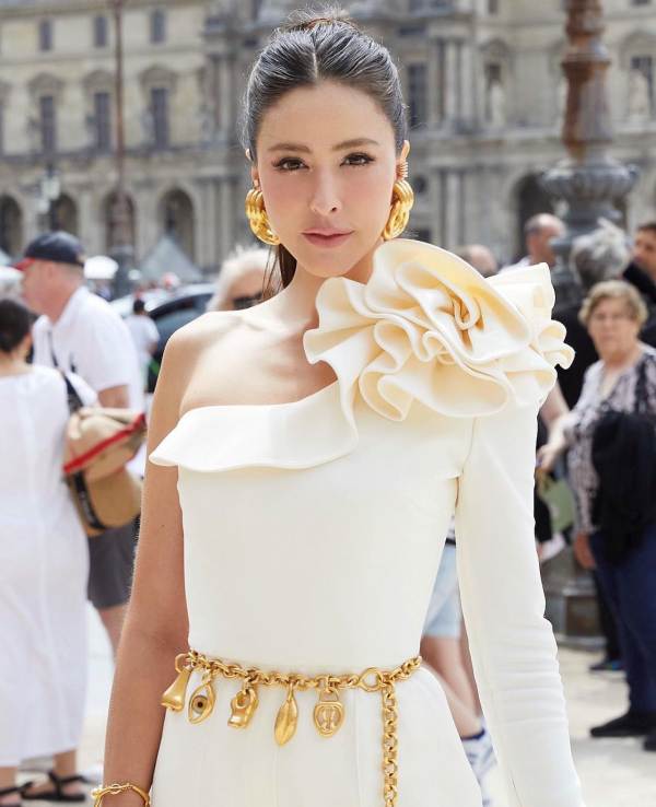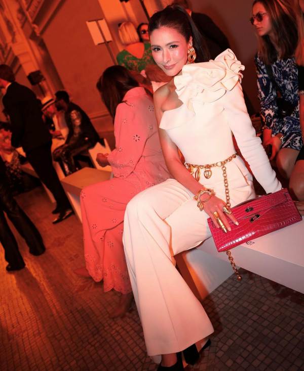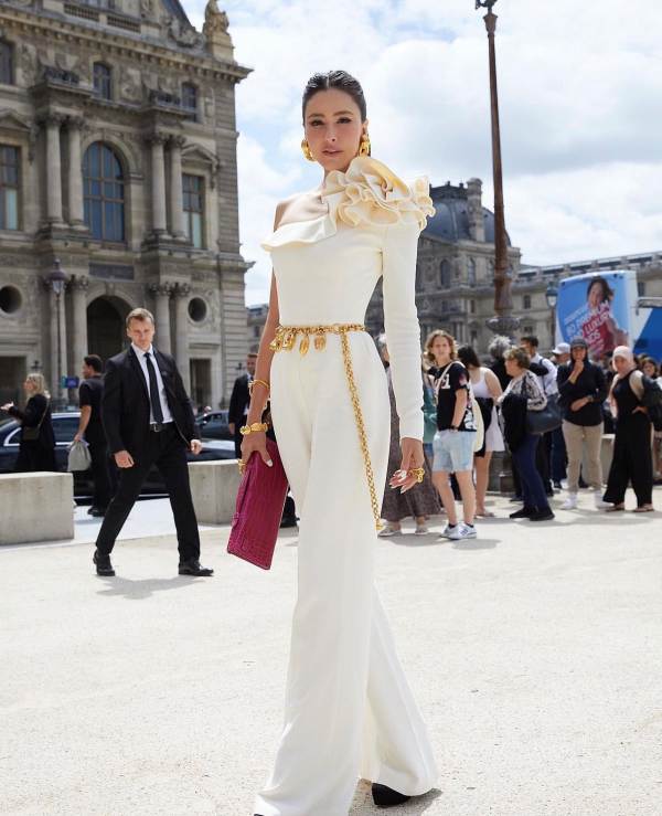 สวยสะกดดั่งนางพญา เมื่อ นางฟ้าคนสวย ริต้า – ศรีริต้า เจนเซ่น ณรงค์เดช ปรากฏตัวในโททัลลุคจั๊มสูทสีขาวปาดไหล่เดี่ยวจับจีบ จากแบรนด์ Elie Saab Collection 2023 เครื่องประดับจาก Schiaparelli เพิ่มความเก๋ด้วยกระเป๋า Hermes Kelly Cut Rose Tyrien คอมพลีตลุคดีงามเวอร์