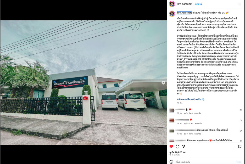 โดยโพสต์นี้ สาวลิลลี่ โพสต์ไว้ว่า “ค่ายเพลงได้หมดถ้าสดชื่น หรือ DM เป็นบ้านหลังแรกของลิลลี่ที่อยู่แล้วอุ่นใจและมีความสุขที่สุด เป็นบ้านที่อยู่กันแบบครอบครัว เปิดรับคนใหม่อยู่ทุก ๆ ปี เข้ามาเป็นครอบครัวเดียวกัน มีเสียงเพลง เสียงหัวเราะ และความสุข บางครั้งอาจจะปะปนน้ำตาไปบ้าง ก็หลากหลายอรรถรส ลิลลี่อยู่ตรงนี้ จุดนี้มา 4 ปีแล้ว ส่วนตัวคิดว่าเป็นเวลานานมากกกกกก !!! สำหรับเด็กผู้หญิงคนนึง ได้เติบโตมาจากที่นี่ อยู่ที่นี่ กินที่นี่ นอนที่นี่ เชื่อว่าหลาย ๆ คนก็คิดแบบนี้ ลิลลี่ไม่เคยมีเพื่อนอยู่โลกภายนอก เพราะส่วนใหญ่จะสนิทกับคนในค่าย พี่ ๆ หลาย ๆ ซีซั่นที่ผ่านเข้ามา แดนซ์เซอร์ นักดนตรี และคนในบ้าน ตั้งแต่มีคนเหล่านี้เข้ามาในชีวิต ไม่เคยเรียกร้องหรือขออะไรเลย เรารู้สึกว่าพอใจในจุดนี้แล้ว มีคนที่คอยเคียงข้าง มีคนที่อยู่ด้วยแล้วมีความสุข สบายใจ คอยเดินทางบนถนน หรือเดินทางชีวิตไปด้วยกัน เติบโตไปด้วยกัน นั่งรถไปคอนเสิร์ตด้วยกัน ร้องเพลงด้วยกัน กินข้าวพร้อมกัน กินหมูกะทะข้างสระพร้อมกัน และอะไรหลาย ๆ อย่างที่ผ่านมา ถ้าวันนึงต้องยุบค่ายไปหรือปิดค่ายไป ก็คงใจหายไม่น้อยเลย ทุกวันนี้เลยพยายามทำงาน ร้องเพลง หรือทำอะไรก็ตามแต่ เพื่อให้มีคนคอยติดตาม คอยรัก คอยมาดูพวกเราเล่นคอนเสิร์ต คอยเจอพวกเรา คอยฟังเพลง