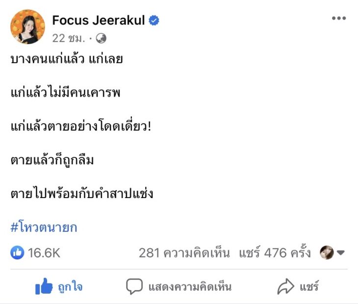 “โฟกัส จีระกุล” แสดงความคิดเห็นกับเรื่องการเมือง