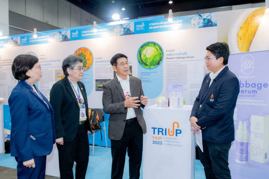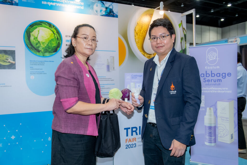 ราชวิทยาลัยจุฬาภรณ์ แสดงผลงานวิจัยสู่นวัตกรรม “เซรั่มกะหล่ำปลี” ภายใต้แบรนด์ Kaalum (กะหล่ำ) ในงาน TRIUP FAIR 2023 มหกรรมส่งเสริมการใช้ประโยชน์จากงานวิจัยและนวัตกรรม ประจำปี 2566 ต่อยอดเชิงพาณิชย์กับภาคอุตสาหกรรมไทย