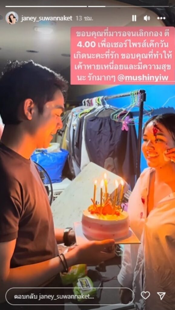 ล่าสุด หนุ่มยิว เซอร์ไพรส์วันเกิด สาวเจนนี่ ด้วยเค้กก้อนโต โดย สาวเจนนี่ โพสต์ตความน่ารักของสามีพร้อมแคปชั่นไว้ว่า “ขอบคุณที่มารอจนเลิกกอง ตี 4.00 เพื่อเซอร์ไพรส์เค้กวันเกิดนะคะที่รัก ขอบคุณที่ทำให้เค้าหายเหนื่อยและมีความสุขนะ รักมาก ๆ @mushinyiw” ทำเอาใครหลาย ๆ คนอิจฉากันเป็นแถว😳
