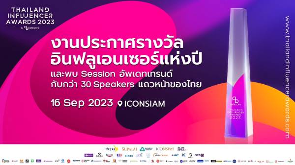 ณ True Digital Park โดยเป็นงานประกาศรางวัลผู้ส่งอิทธิพลทางความคิดหรืออินฟลูเอนเซอร์ และอินฟลูเอนเซอร์แคมเปญแห่งปี ซึ่งจัดต่อเนื่องเป็นปีที่ 5 ภายใต้คอนเซปต์ “Glow & Grow” “เฉิดฉายและเติบโตไปด้วยกัน” และขยายรูปแบบงานด้วยเวที Discussion Panel จาก Speaker แนวหน้าในวงการมากกว่า 30 ท่าน ซึ่งในปีนี้เปิดขายบัตรให้คนทั่วไปเข้าร่วมงาน สามารถซื้อบัตร จองบูธ ได้แล้ววันนี้ ที่ www.thailandinfluencerawards.com โดยงาน Thailand Influencer Awards 2023 กำหนดจัดขึ้นในวันที่ 16 กันยายน 2023 ณ ICONSIAM Hall ชั้น 7