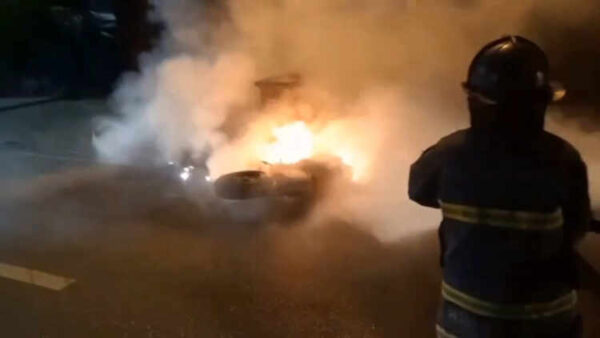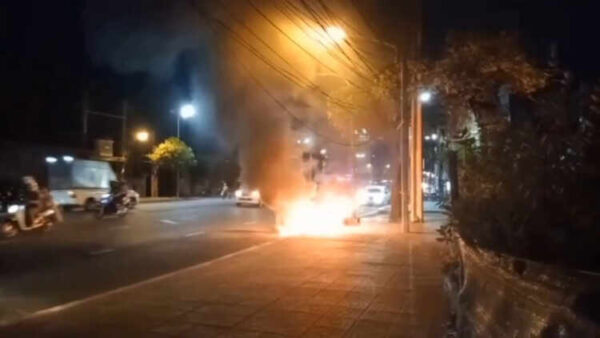ในที่เกิดเหตุพบ รถจักรยานยนต์บิ๊กไบค์ ยี่ห้อดูคาติ วี 4 1100 ซีซี สีแดง ไม่ติดแผ่นป้ายทะเบียน ไฟลุกไหม้รถทั้งคัน และลุกลามไปไหม้ถังขยะบนฟุตบาท จำนวน 2 ใบ เจ้าหน้าที่ดับเพลิงใช้น้ำฉีดอยู่ประมาณ 20 นาที เพลิงจึงสงบ