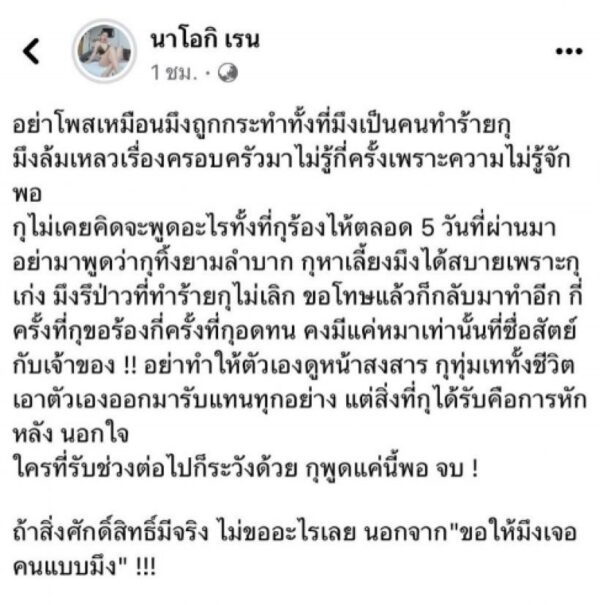 อีกหนึ่งประเด็นที่โซเชียลจับตามองกันอย่างมาก!! กับความรักของ โชครถแห่ และภรรยาสาว อย่าง นัส จุฑารัตน์ ซึ่งจู่ ๆ สาวนัส โพสต์ร่ายยาวไว้ว่า “อย่าโพสต์เหมือนมึงถูกกระทำทั้งที่มึงเป็นคนทำร้ายกู มึงล้มเหลวเรื่องครอบครัวมาไม่รู้กี่ครั้งเพราะความไม่รู้จักพอ กูไม่เคยคิดจะพูดอะไรทั้งที่กูร้องไห้ตลอด 5 วันที่ผ่านมา อย่ามาพูดว่ากูทิ้งยามลำบาก กูหาเลี้ยงมึงได้สบายเพราะกูเก่ง มึงหรือป่าวที่ทำร้ายกูไม่เลิก ขอโทษแล้วก็กลับมาทำอีก กี่ครั้งที่กูขอร้องกี่ครั้งที่กูอดทน คงมีแค่หมาเท่านั้นที่ซื่อสัตย์กับเจ้าของ!! อย่าทำให้ตัวเองดูน่าสงสาร กูทุ่มเททั้งชีวิตเอาตัวเองออกมารับแทนทุกอย่าง แต่สิ่งที่กูได้รับคือการหักหลัง นอกใจ ใครที่รับช่วงต่อไปก็ระวังด้วย กูพูดแค่นี้พอ จบ! ถ้าสิ่งศักดิ์สิทธิ์มีจริง ไม่ขออะไรเลย นอกจาก “ขอให้มึงเจอคนแบบมึง”!!!’