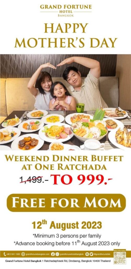 วันแม่ปีนี้ พาแม่ทานฟรี ณ โรงแรมแกรนด์ ฟอร์จูน กรุงเทพฯ