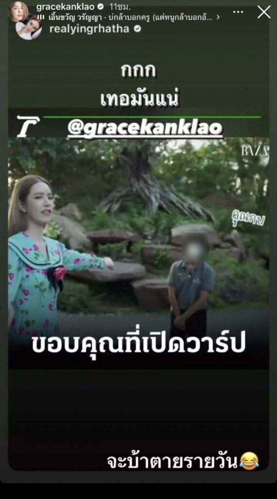 ล่าสุด สาวเกรซ  ชี้แจงหลังถูกโยงปม “ดราม่าพี่กบ ไม่ให้ลูกน้องลา”  ซึ่งในคลิปที่ สาวเกรซ ไปรีวิวนั้นได้มีชาวโซเชียลไปขุดเปิดวาร์ปกันสนั่น ทำให้ สาวเกรซ ลั่น จะบ้าตายรายวัน ไม่เกี่ยวกับฉันได้เคลื่อนไหว แต่ละวันที่ฉันต้องเจอ ไม่เกี่ยวกะฉานนะว้อยค่า”