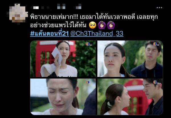 ลาจอไปได้อย่างสวยงาม สำหรับละคร “แค้น” ทาง ช่อง 3 เพราะล่าสุดทุบเรตติ้งใน 2 ตอนสุดท้าย อีพี 21 ในกลุ่มผู้ชมอายุ 15 ปี ขึ้นไป หรือ กลุ่ม 15 BU+ (Bangkok and Urban) กวาดไปได้สวยถึง 4.92 กลุ่มผู้ชมในกรุงเทพฯ ทำไปได้มากถึง 5.93 ยอดดูออนไลน์ 5.2 แสนคน และตอนจบ อีพี 22 ทุบสถิติสร้างนิวไฮ กลุ่ม 15 BU+ (Bangkok and Urban ) โกยเรตติ้งไปถึง 5.66 กลุ่มคนดูกรุงเทพฯ ทำไปได้ถึง 6.48 นอกจากนี้ยังเรียกยอดดูออนไลน์ไปได้สูงสุดถึง 6 แสนคน และยอดดูย้อนหลังผ่าน 3Plus สูงถึง 34 ล้านวิว เรียกว่าเป็นสถิติที่ทำเอารีโมทในมือสั่นสะเทือนกันเลยทีเดียว