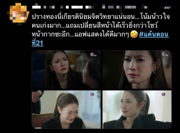 ตั้งแต่เปิดตัวละครจนถึงตอนนี้กระแสความแรงเดือดสู้กับสภาพอากาศเมืองไทยมาตลอด การแสดง อินเนอร์ ทำให้นักแสดงแต่ละคนได้โชว์ศักยภาพถ่ายทอดทักษะการแสดงระดับสูง ที่หาดูได้ยาก เรียกว่าแต่ละคนทุ่มเททั้งแรงกายแรงใจ โดยเฉพาะสาว “แอฟ ทักษอร” สวมคาแรคเตอร์เป็น “ปรางทอง” ล้างภาพจำนางเองสาวละมุนไปจนหมด และ “แต้ว ณฐพร” รับบทเป็น “เหมือนแพร” ที่สกิลการแสดงไม่เคยตก จะเล่นบทไหนก็เอาอยู่ ส่วนพระเอกหนุ่ม นาย ณภัทร(พิธาน) เรื่องนี้ได้โชว์ทักษะการแสดงอินเนอร์เต็มที่