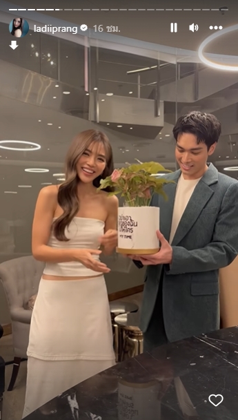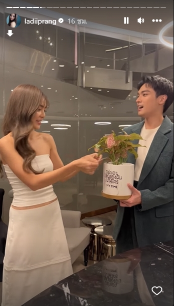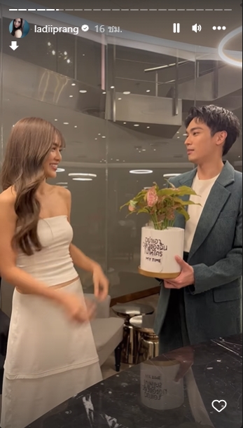 ยิ้มไม่หุบเลย เมื่อ “ปราง กัญญ์ณรัณ ” มอบต้นไม้มาให้ “โอบ นิธิ”