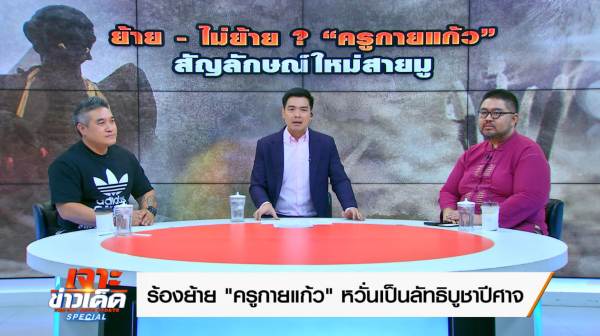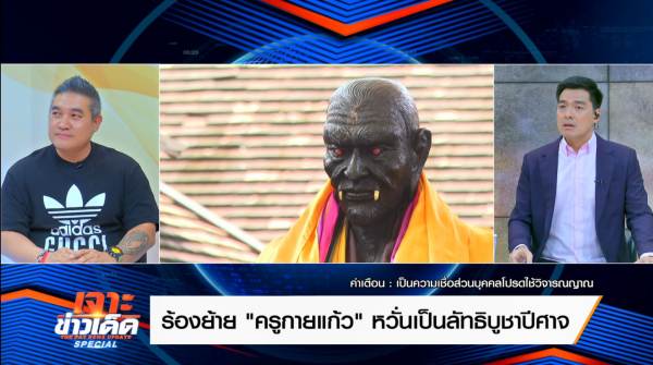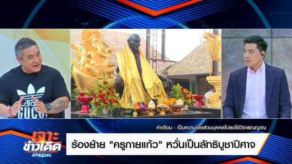 ศรัทธาหรืองมงาย ความเชื่อหรือความจริง เส้นบาง ๆ ที่ตกเป็นประเด็นสุดละเอียดอ่อนทางสังคม สำหรับกรณี “ครูกายแก้ว” รูปปั้นที่นักวิชาการมองเป็นเรื่องไสยพาณิชย์ แนะคนเชื่อต้องมีสติ ฝ่ายทีมผู้สร้างเผยไม่หวังทำธุรกิจในไทย ด้านสภาศิลปินฯ เดินหน้าเรียกร้องให้ย้ายออก หวั่นสร้างความเชื่อผิด ทำภาพลักษณ์เสียหาย วิเคราะห์กันสด ๆ ผ่านโต๊ะข่าว ในรายการ “เจาะข่าวเด็ด สเปเชียล” (The Day News Update Special) ช่อง MONO29 โดยผู้ประกาศข่าว “บ๊อบ-ณัฐธีร์ โกศลพิศิษฐ์” พร้อมแขกรับเชิญ “คุณเทพฤทธิ์ แป้นสุข หรือ อาจารย์ต้น” น้องชายและลูกศิษย์ “อาจารย์หน่อย” ผู้สร้างครูกายแก้ว ร่วมด่วย “อาจารย์จตุรงค์ จงอาษา” นักวิชาการอิสระด้านพระพุทธศาสนา และต่อสายพูดคุยกับ “นาวาตรี กณภัทร พงศ์เฉลิมพร” เลขานุการ สภาศิลปิน ส่งเสริมพระพุทธศาสนาแห่งประเทศไทย มหาวิทยาลัยมหาจุฬาลงกรณราชวิทยาลัย