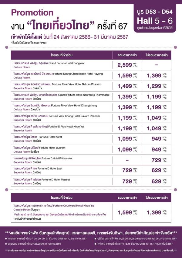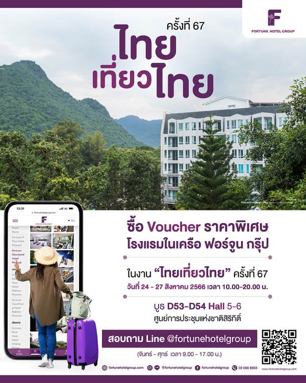 สายชิล ห้ามพลาด! โรงแรมในเครือ ฟอร์จูน ทั้ง 13 แห่ง จัดโปรสุดคุ้ม ห้องพักราคาพิเศษ ในงาน “ไทยเที่ยวไทย” ครั้งที่ 67 เที่ยวหนัก จัดใหญ่ ในวันที่ 24 – 27 สิงหาคม 2566 บูธ D53 – D54 Hall 5-6 เวลา 10.00 – 21.00 น. ณ ศูนย์การประชุมแห่งชาติสิริกิติ์