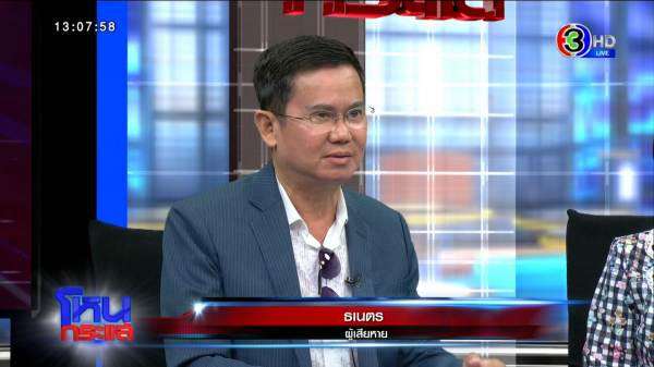ธเนตร : ผมคิดว่าเขาเก่ง เพราะซื้อบ้านราคา 55 ล้านบาทได้ ถามว่าเขาเก่งเรื่องอะไร เรื่องหุ้น มีคอนเนคชั่น มีอินไซต์เรื่องหุ้น เขาชวนผมลงทุน ครั้งแรกลงทุน 2 ล้าน กำไรเขาขอ 20 เปอร์เซ็นต์ ให้เขาเล่นสองสามที กำไรจริงๆ นะ เล่นไปเล่นมา พี่หนูได้หุ้น IPO ของทางด่วน ราคาเท่านี้นะ ถ้าเข้าตลาดจะราคาเท่านี้นะ ก็ชวนผมซื้ออีกประมาณ 2 ล้าน เราคิดว่ายังไงเขาก็อยู่บ้านเราอยู่แล้ว คงไม่หนีไปไหน เล่นไปเล่นมา ชวนอีก ถ้าพี่เทรดหุ้นให้หนูเทรด 10 ล้าน หนูขอกำไรแค่ 20 เปอร์เซ็นต์ ทีนี้คุณกบไม่เห็นด้วย แต่ผมอยากลองว่าจริงหรือเปล่า ผมก็โอนเงินเข้าบัญชี 10 ล้าน แต่โอนเข้าหุ้นผม ให้เขาเทรด แต่ทีนี้ผมเห็นเขาเทรดไม่เข้าท่า เสียไปประมาณ 4 ล้าน ผมก็คัททิ้งเลย เหลือ 6 ล้าน เท่ากับผมเสียหุ้น IPO สองล้าน เทรดตรงนี้อีก 4 ล้าน เขาบอกเสียเท่าไหร่เขาจะรับผิดชอบ เราก็ตามไปตามมายืดเยื้อไปยืดเยื้อมา ให้ทนายฟ้อง ฟ้องล่าสุดจบเราเรียกค่าเสียหายได้แค่ 1.9 ล้าน เพราะอย่างอื่นไม่มีหลักฐาน เขาก็ยอมความ เมื่ออาทิตย์ที่แล้ว เขาไปที่ศาล เอาลูกตัวเล็ก ๆ ไป