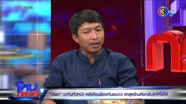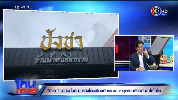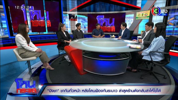 รายการโหนกระแส ออกอากาศวันที่ 1 ก.ย. 66 “หนุ่ม กรรชัย กำเนิดพลอย” ดำเนินรายการ ผลิตในนามบริษัท ดีคืนดีวัน จำกัด ออกอากาศทุกวันจันทร์-ศุกร์ เวลา 12.35 น. ทางช่อง 3 กดเลข 33 ได้สัมภาษณ์ แก้ม เจ้าของร้านลูกไก่ทอง , นิว เจ้าของร้านปังชา จ.เชียงราย, แตงกวา เจ้าของร้านทางช้างเผือก จ.สงขลา, นุ๊ก – มายด์ เจ้าของร้านและหุ้นส่วนตั้งใจชง ตัวแทนแก้ม ลูกไก่ทอง , อรรณพ บุญสว่าง ทนายความคุณแก้ม เจ้าของร้านลูกไก่ทอง , ทักษอร สมบูรณ์ทรัพย์ ผู้เชี่ยวชาญเฉพาะด้านกฎหมายกรมทรัพย์สินทางปัญญา