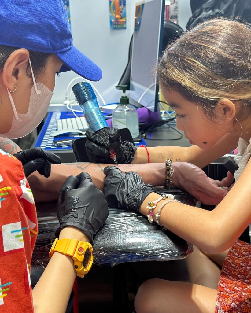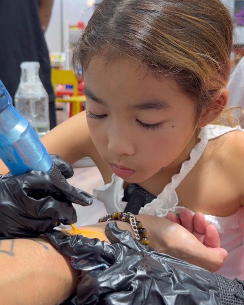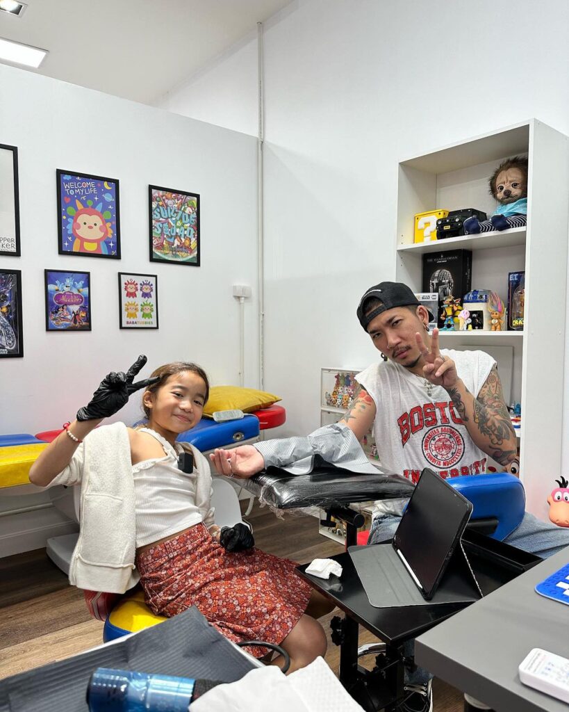 ล่าสุด น้องแตงไทย ลูกสาวคนเล็ก ขอ แม่แจง ว่าอยากไปเรียนสัก ที่ร้านสักของ ชาช่า อริต์ตา งานนี้ทำเอาทั้งพ่อและแม่อึ้งไปพร้อม ๆ กัน และ น้องแตงไทย ขอให้ พ่อแจ๊ส มาช่วยเป็นแบบให้ลูกฝึกลงเข็มสักลายแรกบนแขนอีกด้วย