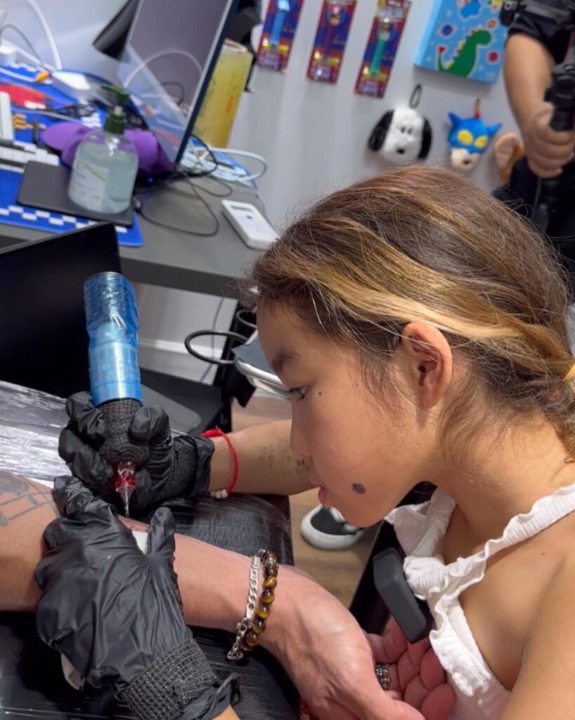 โดย สาวแจง โพสต์รูป น้องแตงไทย กำลังตั้งหน้าตังตาเรียนรู้การสัก พร้อมกับบทสนทนาไว้ว่า “แตงไทย: มี้ไออยากเรียนสัก พี่ช่าเค้ารับสอน
