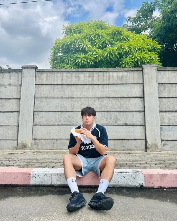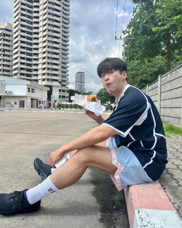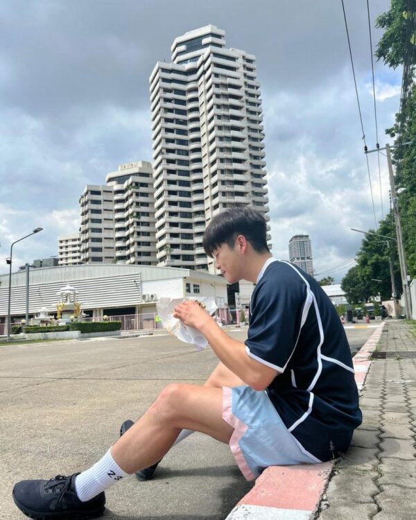 ชิลมาก! พระเอกหน้าตี๋ช่อง 3 กำลังกินเบอร์เกอร์อยู่ริมฟุตบาท