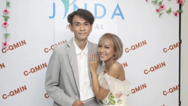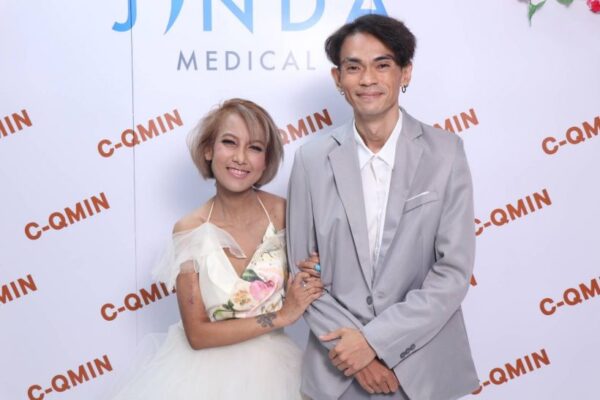 โดย สาวหญิง ได้โพสต์รูปคู่พร้อมแคปชั่นไว้ว่า “สานฝันความอยากเป็นเจ้าสาวกันหน่อยขอบคุณ c-qmin ขมิ้นชัน นาโน ผลิตภัณท์ที่ช่วยดูแลสุขภาพเราสองคนกับงานคู่กันในรอบ2ปี #c-qmin ขมิ้นชัน นาโน เจ้าแรกในประเทศ”