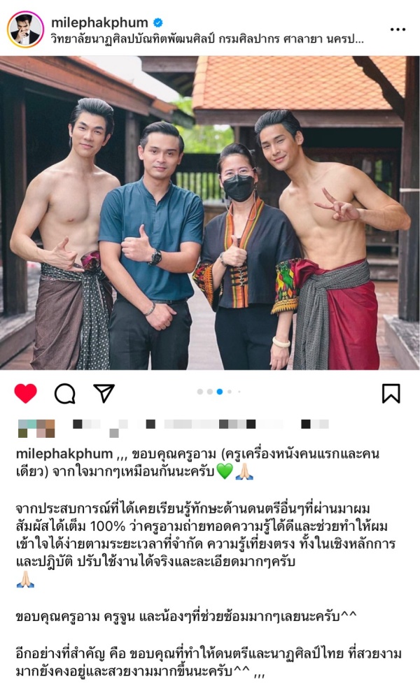 “มาย ภาคภูมิ” ฝึกอย่างหนักเพื่อรับบท มือตีตะโพน โพสต์ซึ้ง ขอบคุณครูเครื่องหนังคนแรกในชีวิต
