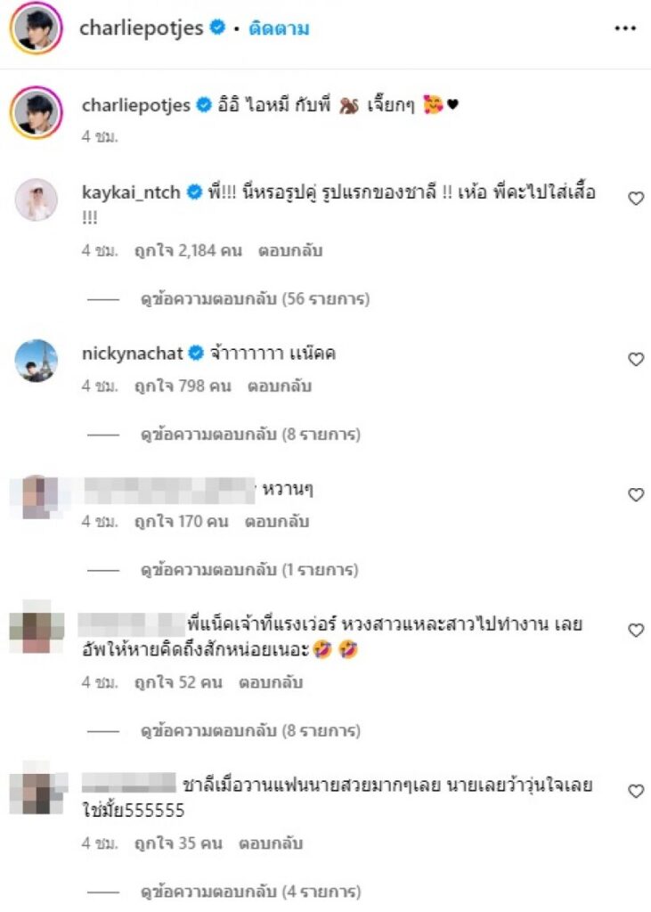 ล่าสุด หนุ่มแน็ก โพสต์ภาพ สาวเก๋ไก๋ พร้อมหยอดแคปชั่นสุดหวาน งานนี้ทำเอาคนในวงการบันเทิงแห่แซวกันเป็นแถวและทางด้าน สาวเก๋ไก๋ ตอบกลับอย่างช็อตฟีลไว้ว่า “พี่!!! นี่หรอรูปคู่ รูปแรกของชาลี !! เห้อ พี่คะไปใส่เสื้อ !!!” 😂