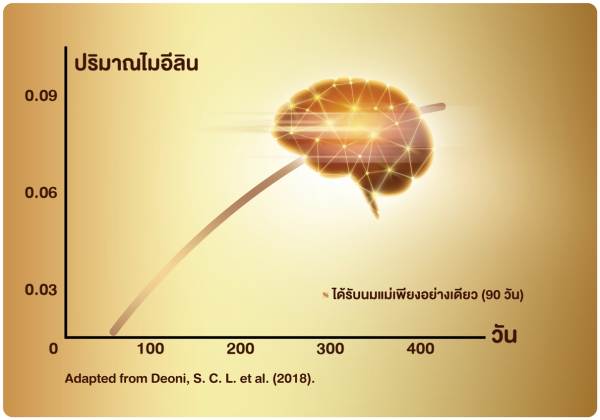 ในขวบปีแรก ซึ่งเป็นช่วงเวลาที่สมองเรียนรู้ได้ เร็วกว่าช่วงเวลาอื่นๆ ของชีวิต เพราะทุกวินาทีจะเกิดการเชื่อมต่อของเซลล์ประสาทถึง 1 ล้านเซลล์ ผ่านกระบวนการสร้างไมอีลิน (Myelination) สมองของเด็กในวัยนี้จึงเชื่อมโยงติดต่อสื่อสารกันได้อย่างรวดเร็ว ทำให้เด็กจดจำและเรียนรู้สิ่งต่างๆ ได้ไว ยิ่งสมองสามารถเชื่อมโยงผ่านกันด้วยความเร็วสูงเท่าใด จะเป็นกลไกที่สำคัญอย่างยิ่งสำหรับการพัฒนาทักษะในทุกๆ ด้านได้อย่างเต็มศักยภาพ เพราะการเคลื่อนไหว หยิบ จับ สั่งการ คิด วิเคราะห์ ตัดสินใจต่างๆ ของมนุษย์นั้น เกิดขึ้นภายใต้การทำงานของกลไกสมอง ดังนั้นช่วงเวลานี้จึงเป็นโอกาสทองในการพัฒนาสมองของลูก และเป็นรากฐานสำคัญที่จะทำให้การเรียนรู้ต่างๆ ในอนาคตของลูกนั้นดีขึ้นและรวดเร็วขึ้น