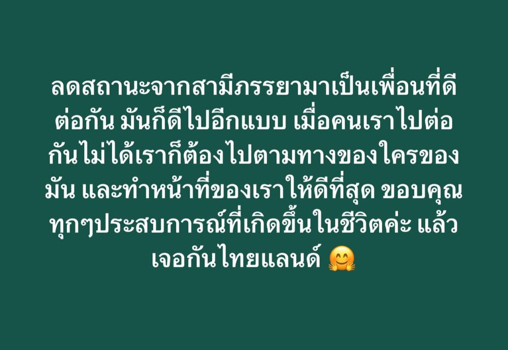 เนื้อหาที่เกี่ยวข้อง ปิดฉากรัก! นักร้องเสียงดีประกาศลดสถานะ จากสามีภรรยา มาเป็นเพื่อนที่ดีต่อกัน
