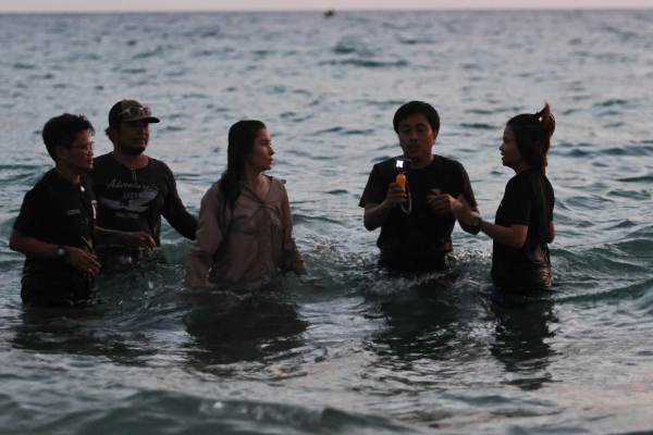 เบื้องหลังฉากนี้ 2ผู้กำกับ เก้า วิรดา และ เอ้อ บุณณ์ญาณ์ ยกกองไปถ่ายทำกันถึงหาดในทอน จ.ภูเก็ต ซึ่งการถ่ายทำต้องแข่งกับเวลาสุด ๆ เพราะผู้กำกับอยากได้แสงยามเย็นก่อนพระอาทิตย์ตกดินที่เป็นช่วงเวลาของแสงที่สวยที่สุด ซึ่งมีเวลาน้อยมาก และนักแสดงต้องเปียกและลงทะเลไปจริง ๆ จึงต้องห้ามพลาด ทีมงานและนักแสดงจึงต้องซ้อมและทำความเข้าใจมุมกล้องกันเป็นอย่างดี