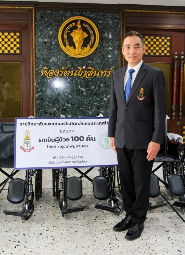 ราชวิทยาลัยแพทย์ออร์โธปิดิกส์แห่งประเทศไทย โดย พลตรี ศ.คลินิก นพ.ทิพชาติ บุณยรัตพันธุ์ ประธานราชวิทยาลัยแพทย์ออร์โธปิดิกส์แห่งประเทศไทย จัด “โครงการบริจาครถเข็นโครงเหล็กรุ่นยกขาได้เพื่อผู้ป่วยทุพพลภาพและผู้สูงอายุ” ภายใต้การกำกับดูแลของกรุงเทพมหานคร โดยมอบรถเข็นโครงเหล็กรุ่นยกขาได้สำหรับผู้ป่วย จำนวน 100 คัน เพื่อมุ่งเน้นให้โรงพยาบาลและหน่วยงานต่าง ๆ มีอุปกรณ์สำหรับการเคลื่อนย้ายอย่างเพียงพอ