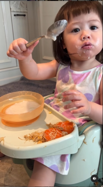 ความน่ารักมาอีกแล้ว! เมื่อ “แม่ชม” แชร์โมเมนต์ “น้องเกล” นั่งกินอาหารด้วยตัวเอง