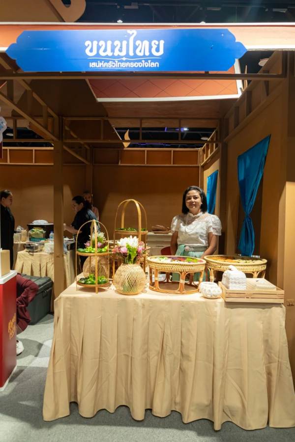 ด้านเสน่ห์ครัวไทย ก็นำ “ขนมไทย” ของหวานนานาชนิด ที่พิถีพิถันในขั้นตอนการทำ มีภาพลักษณ์และรสชาติที่เป็นเอกลักษณ์ พร้อม “น้ำสมุนไพร” มากคุณประโยชน์ อย่าง น้ำใบบัวบก น้ำตะไคร้ และน้ำอัญชันมะนาว มาให้ชมและลิ้มลองกัน