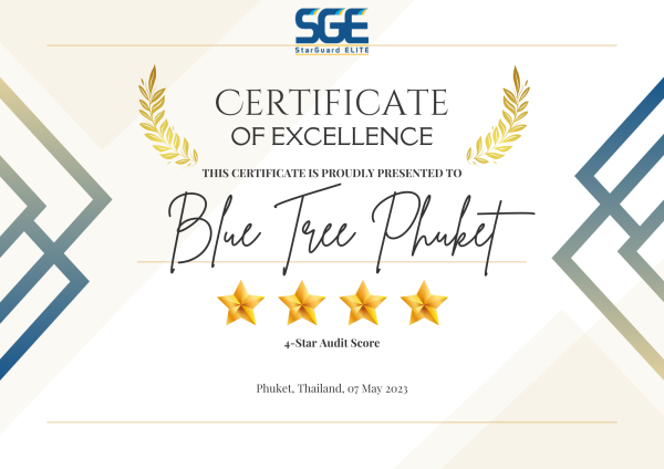 4. มาตรฐานด้านสุขอนามัย เป็นมาตรฐานที่ “บลูทรี” ให้การดูแลและใส่ใจเป็นพิเศษและได้รับรางวัล The Best of SHA Awards 2021 (3 ดาว) จากกระทรวงการท่องเที่ยวและกีฬา โดย การท่องเที่ยวแห่งประเทศไทย (ททท.) ซึ่งเป็นรางวัลที่สร้างความภูมิใจให้กับองค์กรและพนักงานทุกคน ที่มุ่งมั่นดำเนินการตามโครงการมาตรฐานสะอาดและความปลอดภัยด้านสุขอนามัยอย่างเคร่งครัด เพื่อมอบความสะดวกสบายให้ผู้ใช้บริการทุกคนได้ที่อย่างเต็มที่ ไม่ว่าจะเป็นการนำเทคโนโลยีหุ่นยนต์ช่วยทำความสะอาดใต้น้ำ มีระบบบำบัดน้ำที่มีประสิทธิภาพสูง ตลอดจนการแยกขยะ ทั้งขยะรีไซเคิล และ ขยะทั่วไป ซึ่งรับรองความสะอาด ปลอดภัย ถูกสุขอนามัยครอบคลุมทั่วทุกพื้นที่ อย่างแน่นอน