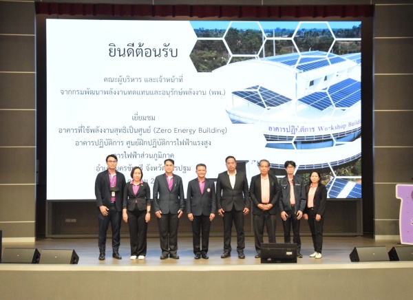 (วันที่ 4 ตุลาคม 2566) นายโสภณ มณีโชติ รองอธิบดีกรมพัฒนาพลังงานทดแทนและอนุรักษ์พลังงาน (พพ.) พร้อมด้วยผู้บริหารระดับสูง นำสื่อมวลชนลงพื้นที่เยี่ยมชมความสำเร็จของ อาคารปฏิบัติการ ศูนย์ฝึกปฏิบัติการไฟฟ้าแรงสูง ตั้งอยู่ในพื้นที่ ตำบลไทยาวาส อำเภอนครชัยศรี จังหวัดนครปฐม เป็นผู้ให้บริการฝึกอบรมสำหรับพนักงานการไฟฟ้าส่วนภูมิภาคและบุคคลภายนอก ที่นำเทคโนโลยีด้านบริหารจัดการพลังงานทดแทน และอนุรักษ์พลังงานมาใช้ควบคู่กัน โดยมีเป้าหมายเพิ่มประสิทธิภาพด้านพลังงาน เพื่อให้อาคารมีการใช้พลังงานสุทธิเป็นศูนย์ (Zero Energy Building) ซึ่งได้รับรางวัลชนะเลิศ Thailand Energy Awards 2023 และ ASEAN Energy Awards 2023 ด้านอนุรักษ์พลังงาน ประเภทอาคารที่ใช้พลังงานสุทธิเป็นศูนย์ (Zero Energy Building) ถือเป็นอาคารต้นแบบด้านการอนุรักษ์พลังงาน เนื่องจากอาคารดังกล่าว มีการปรับปรุงระบบการใช้ไฟฟ้า ระบบส่องสว่าง สามารถลดการใช้พลังงานได้เป็นผลสำเร็จ มีการติดตั้งพลังงานสะอาดเพื่อผลิตไฟฟ้าได้เอง สามารถลดภาระจากการใช้ไฟฟ้าจากระบบจำหน่ายไฟฟ้าถึงร้อยเปอร์เซนต์ ซึ่งผู้บริหารได้ตระหนักถึงความสำคัญในการใช้พลังงานอย่างรู้คุณค่า จึงได้ปรับเปลี่ยนอาคารเดิมที่มีอายุกว่า 10 ปี ให้เป็นอาคารใช้พลังงานสุทธิเป็นศูนย์ ถือเป็นต้นแบบอาคารที่สำคัญในการมุ่งสู่เป้าหมายความเป็นกลางทางคาร์บอน Carbon Neutral 100 % ในปี ค.ศ. 2050 หรือ ปี พ.ศ. 2593
