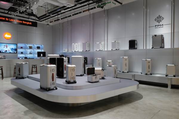 เมื่อเดินเข้ามาภายใน FPM MILANO Pop-Up Store จะได้สัมผัสบรรยากาศ Airport terminal จุดเริ่มต้นของการเดินทางที่พร้อมให้ทุกคนเลือกกระเป๋าเดินทางคู่ใจ สะพายกล้องตัวโปรด ออกตะลุย ทริปได้อย่างสนุกยิ่งขึ้น มัลติแบรนด์บูติครวมลักซ์ชัวรี ทราเวล ไอเทม แห่งนี้ ตกแต่งโทนสีเงิน ประดับด้วยภาพถ่ายภูเขาที่เรียงซ้อนกัน บริเวณตรงกลางดีไซน์เป็น Baggage Claim รวมถึง ป้าย  Welcome to Leica Boutique Bangkok และเคาน์เตอร์แคชเชียร์ ให้ความรู้สึกเหมือนกำลังเช็กอินรอรับบอร์ดดิ้งพาส เตรียมพร้อมออกเดินทางพบประสบการณ์ใหม่ ๆ